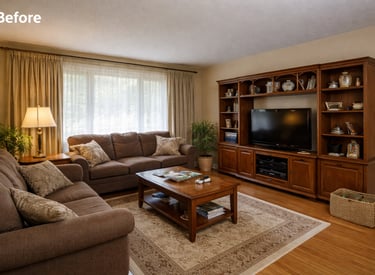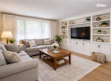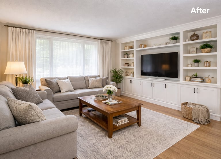 Built-in cabinetry and shelving installed to improve storage, balance, and overall room flow.